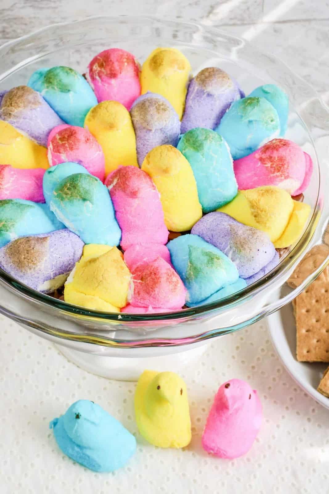This easy-to-make dessert combines the gooey sweetness of Peeps marshmallows with rich chocolate and crunchy graham crackers. Simply layer your favorite chocolate chips and Peeps in a skillet, bake until melted and bubbly, and serve with graham crackers for dipping.