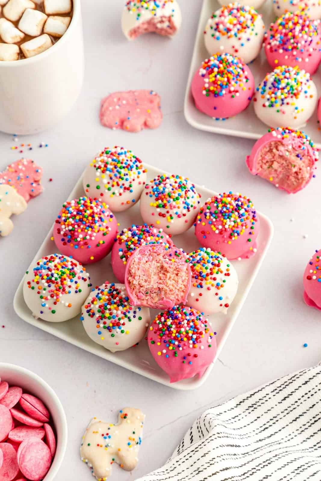 These 5-ingredient Circus Animal Cookie Truffles are a sweet no-bake dessert just like your favorite childhood cookie! Filled with circus animal cookies and cream cheese, then coated in candy melts and decorated with nonpareils, this bite-sized dessert is one that can’t be beat.