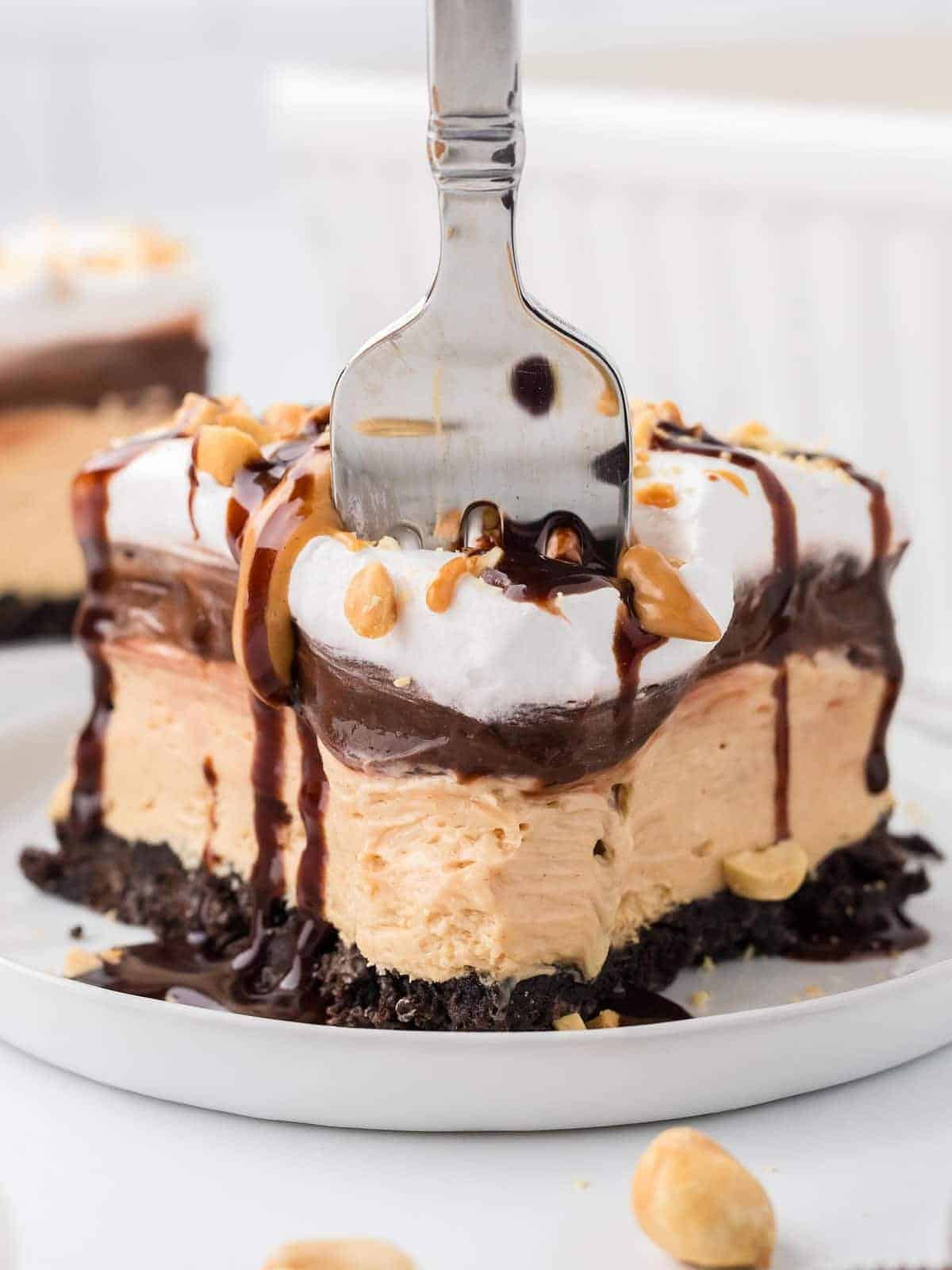 With creamy layers of peanut butter and chocolate pudding, plus a crunchy Oreo base, this dessert has it all.