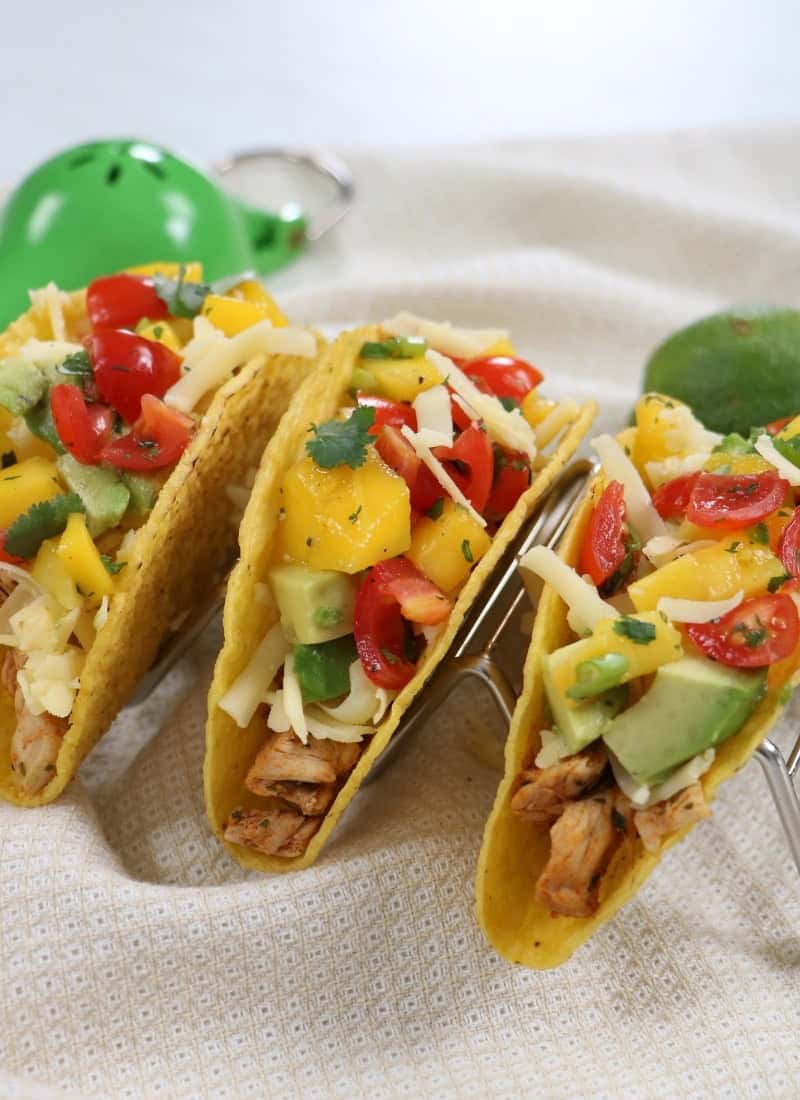 This Easy Leftover Chicken Tacos Recipe with Mango Salsa is the fastest way to enjoy delicious tacos for lunch or taco night.