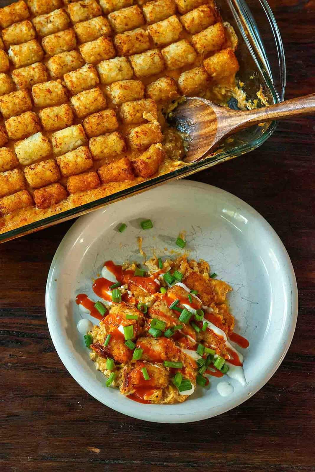 Tater Tot Buffalo Chicken Casserole