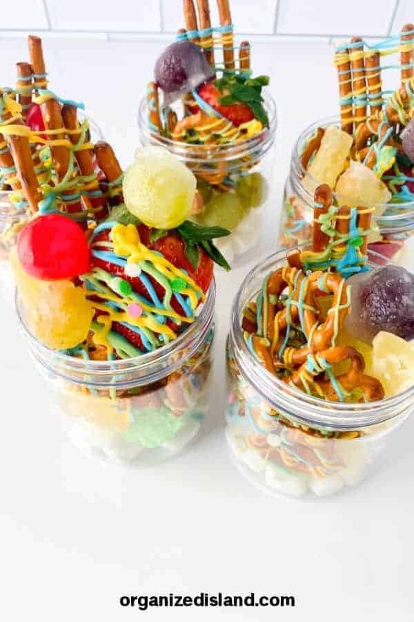 Made with candied pretzels and candied fruit, these are so colorful on your table. The best part is that you can make ahead these items and just put them together when you are ready.