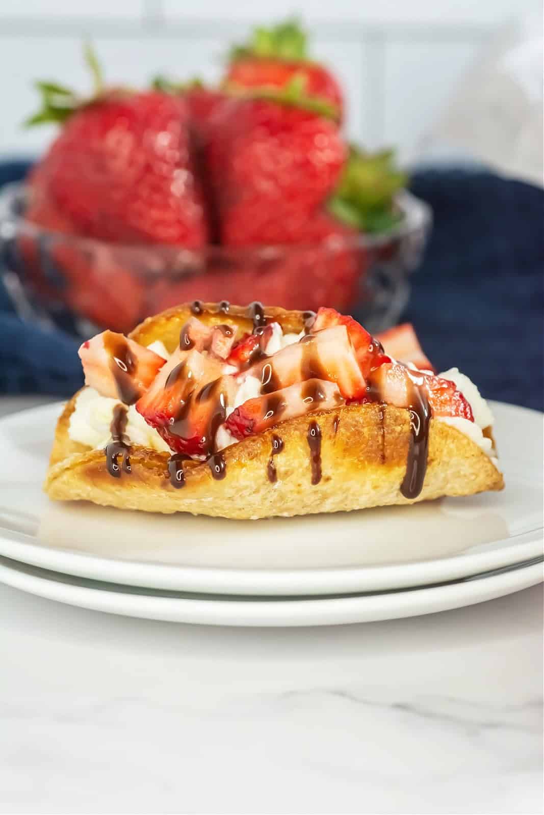 These Mini Dessert tacos are a sweet treat everyone will love. Toasted mini tortilla rounds are filled with homemade whipped cream, then topped with diced strawberries and chocolate sauce for a decadent dessert that’s perfect for your next Taco Tuesday.