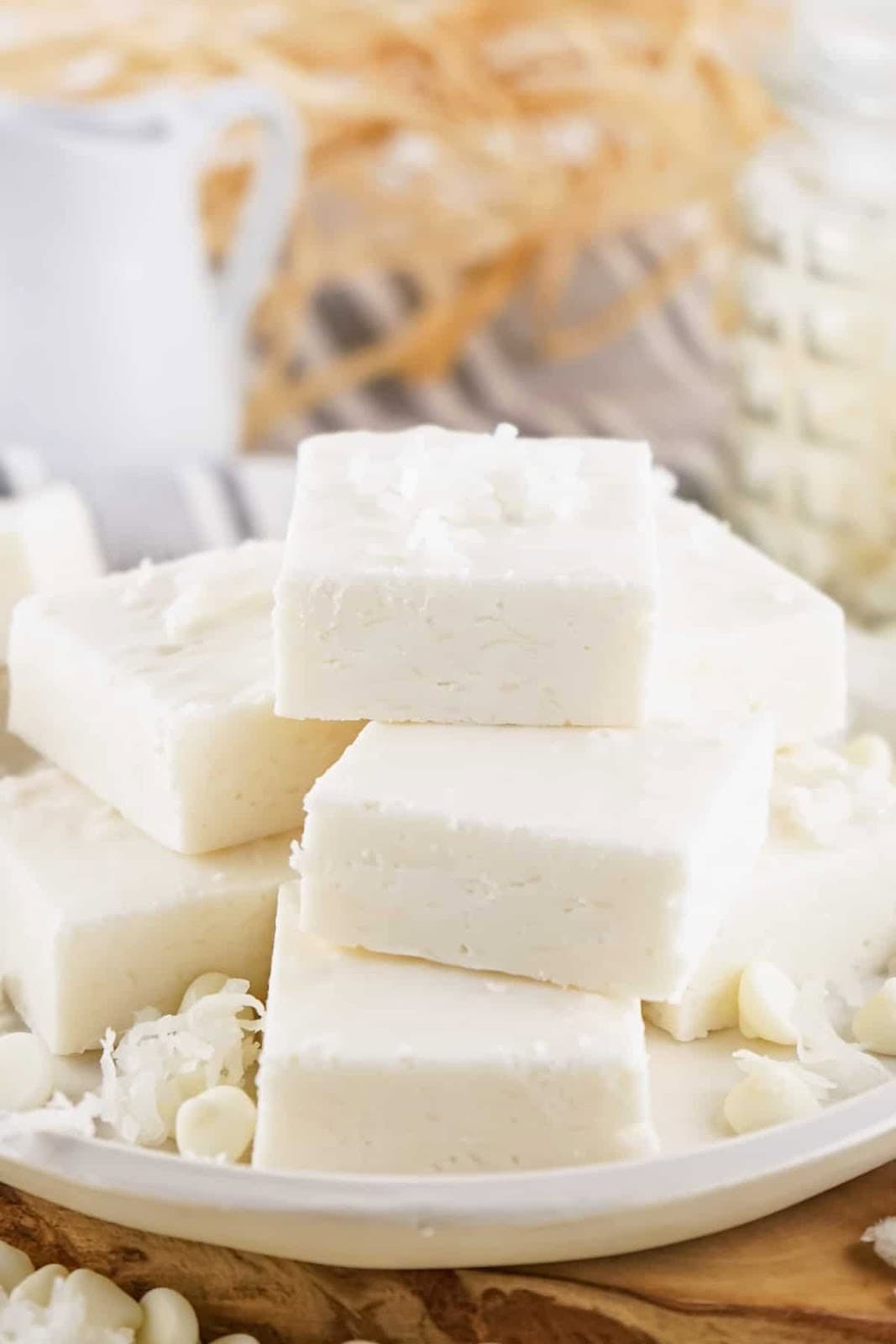 This homemade coconut fudge recipe is simple to make and impossible to resist! Creamy white chocolate fudge with hints of coconut flavor and sweet shredded coconut mixed inside.