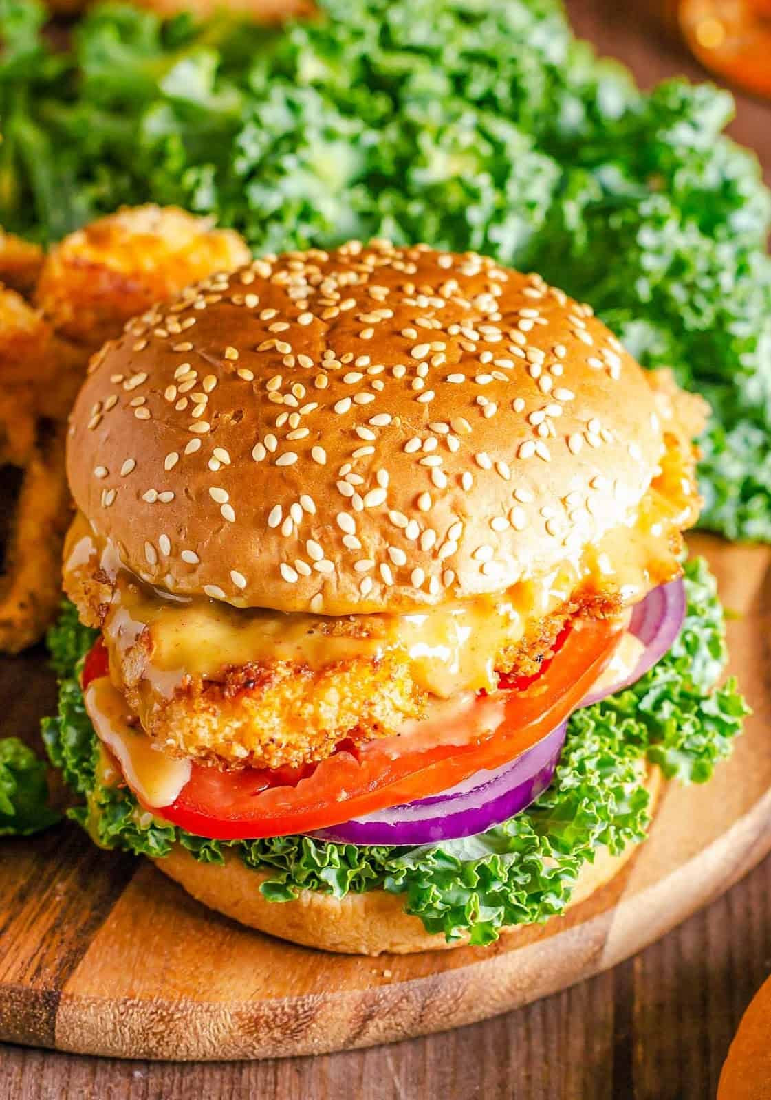 This Fried Chicken Sandwich has tender, crispy chicken that’s topped with a homemade honey mustard sauce and sandwiched between toasted buns! Slide these delicious sandwiches onto the table for lunch or dinner in under 30 minutes.