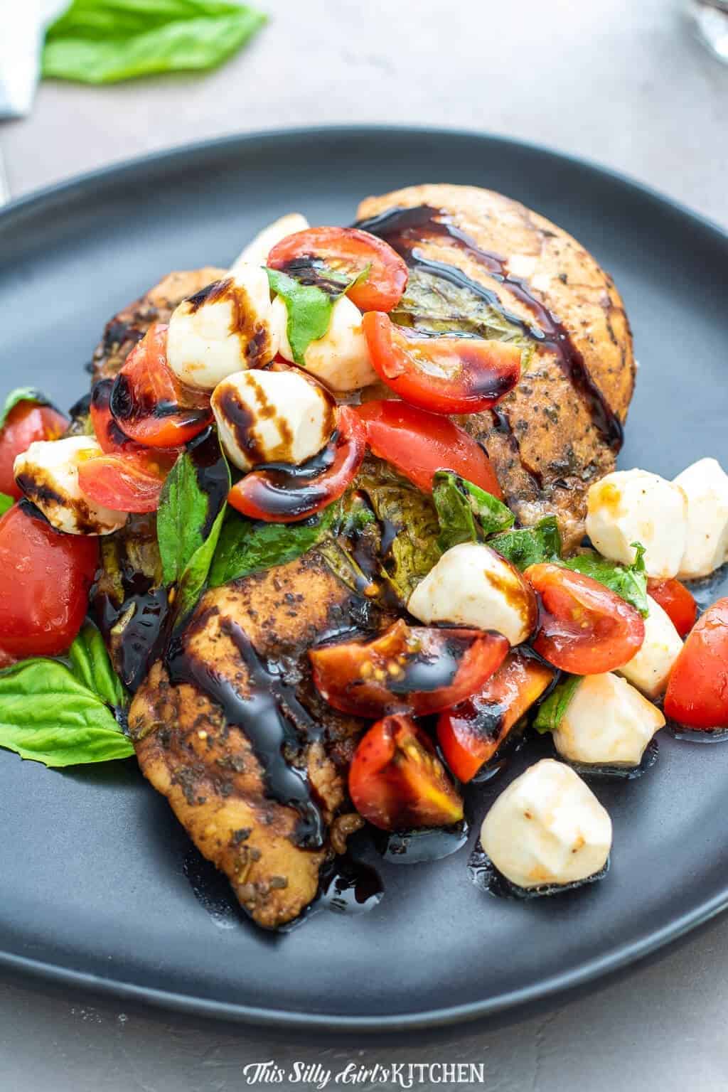 Juicy skillet-seared chicken, creamy mozzarella pearls, sweet cherry tomatoes, and peppery arugula come together with a drizzle of balsamic glaze for a classic Italian flavor that never disappoints.