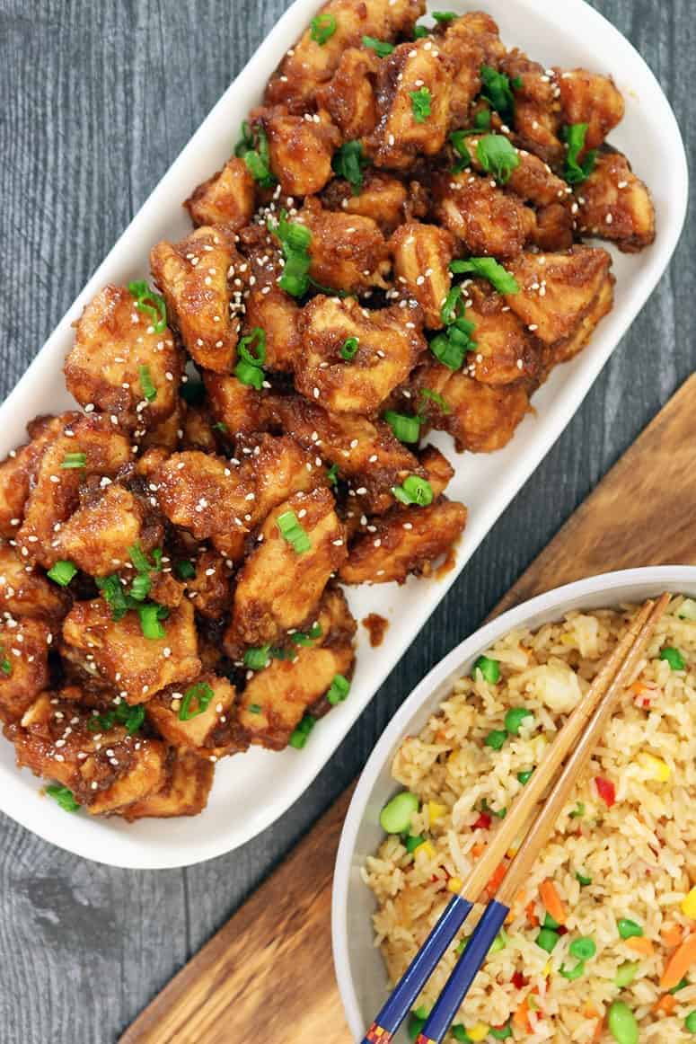 This tangerine chicken recipe pairs juicy, tender chicken breasts with the most delicious sweet and tangy Asian tangerine sauce that’s a little spicy, a little sweet, and a little savory all at once. Enjoy the perfect balance of flavors in a single dish.