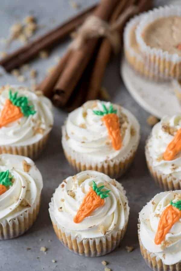 These carrot cake cheesecake cupcakes have a graham cracker crust and a creamy carrot and spice cheesecake filling. 30 minutes total to prep and bake, then chill in the fridge until serving.