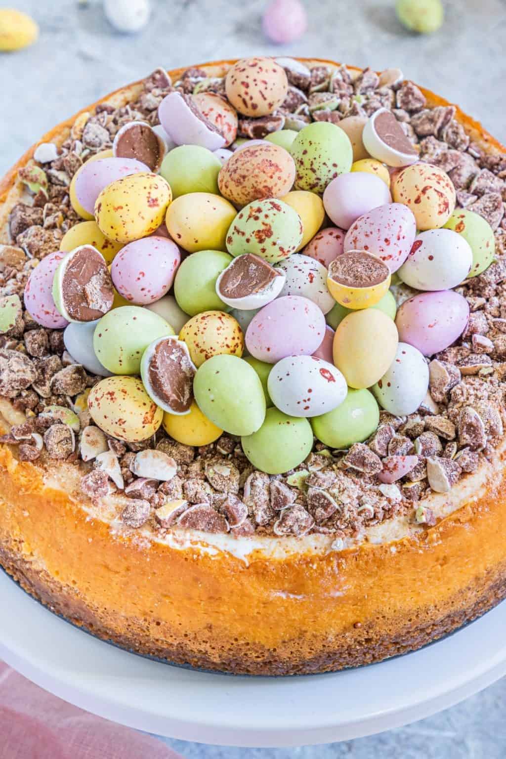 This creamy cheesecake will be the star of your easy Easter desserts! It’s a festive pressure cooker recipe with pastel cheesecake and beloved chocolatey mini Cadbury eggs on top!