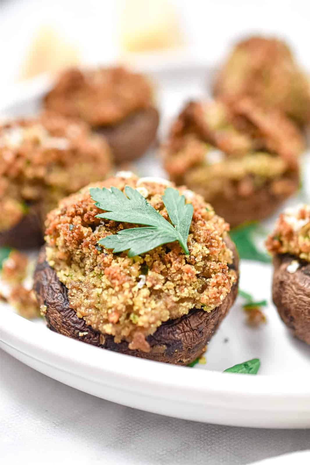 An easy holiday side dish or appetizer, these Italian stuffed mushrooms are full of parsley, garlic, parmesan cheese, and bread crumbs. This recipe features meaty cremini mushrooms, but this recipe works with classic button mushrooms as well.