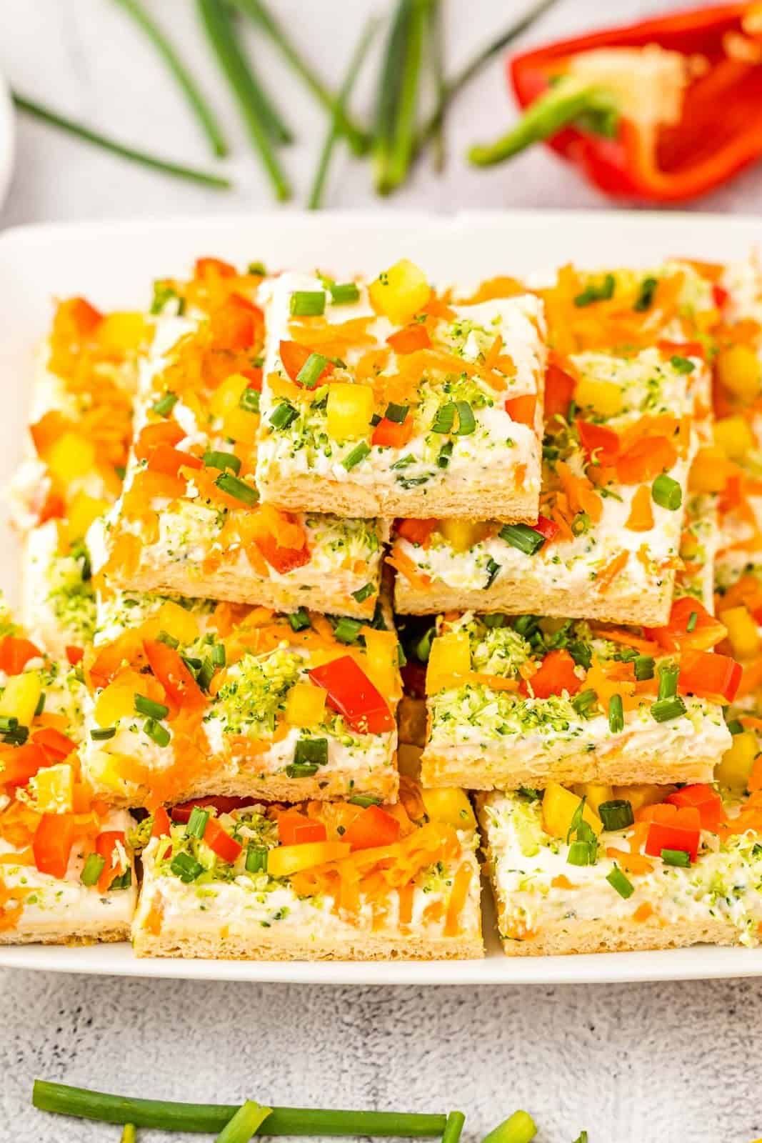 Crescent Roll Veggie Pizza is a fun and easy recipe that’s filled with lots of fresh and delicious flavor. It makes the perfect snack, appetizer, or potluck dish that’s great for spring and summer occasions.