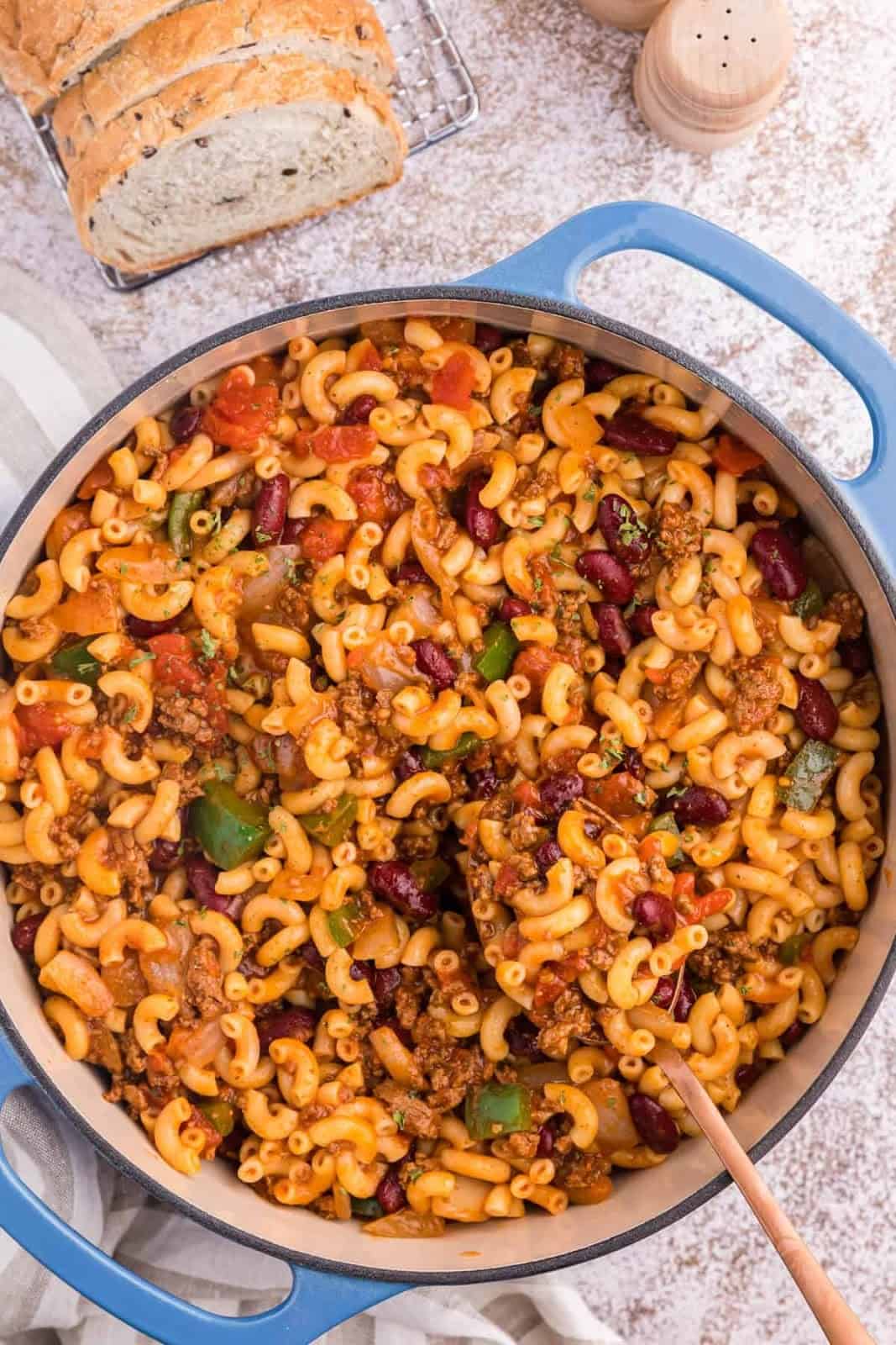 Add some elbow macaroni noodles to your traditional chili to make a fun mashup called Chili Macaroni. Your favorite hearty meal is even more filling with extra noodles in the beans, meat, and veggies.It’s a quick meal perfect for a busy weeknight.