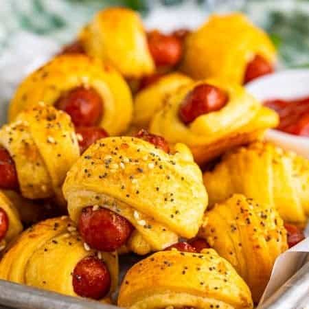 These Puff Pastry Pigs in a Blanket have a beautiful and flaky golden-brown crust that is steps above the version we ate as kids. Serve these bite-sized appetizers at your next party with the homemade honey mustard sauce for the ultimate snack.
