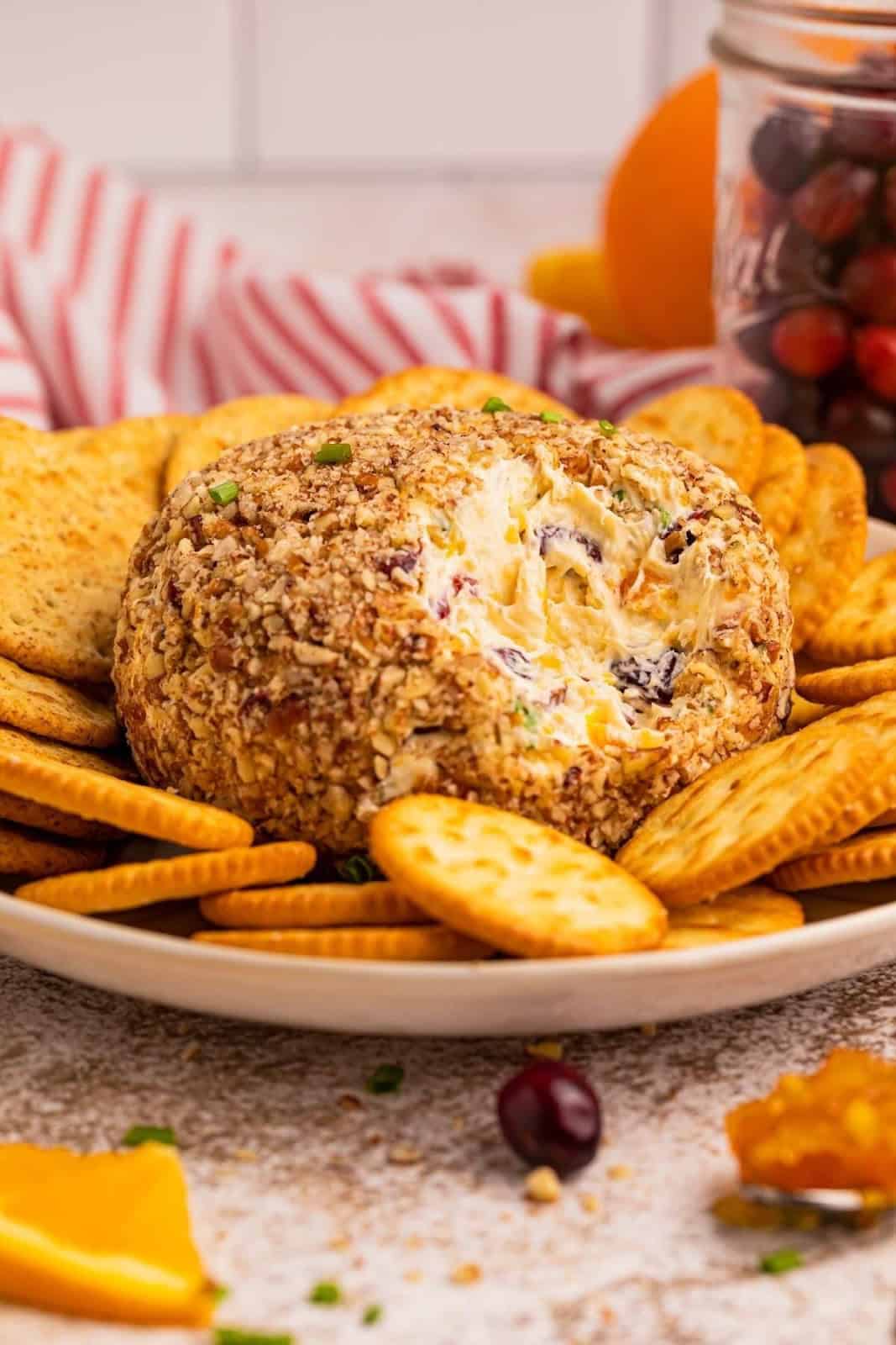 The marmalade gives it the perfect citrusy taste. It also has a pop of brightness from the cranberries that cuts through the richness of the cheese. Kicking the meal off with a showstopper like this cheese ball is always a great idea.