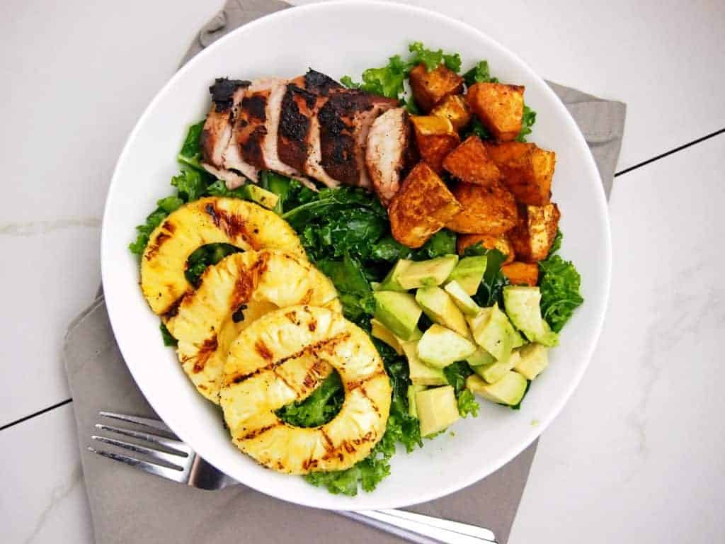 Grilled Pineapple Jerk Pork BowlsWith Kale And Avocado