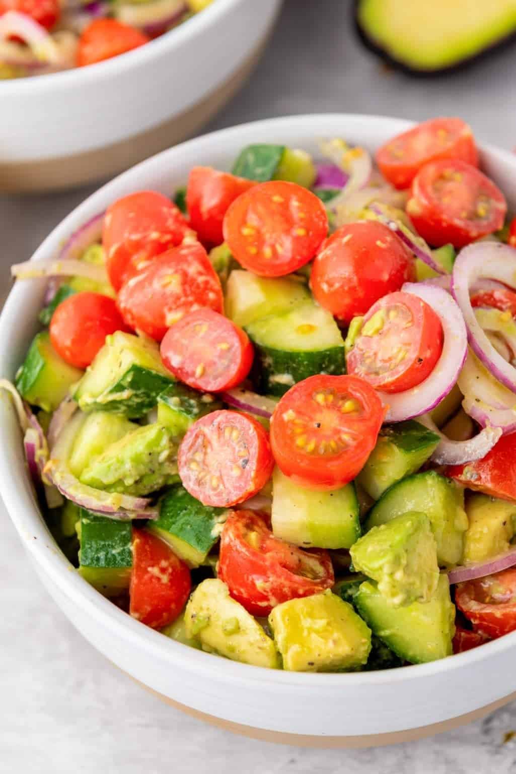 This refreshing avocado salad is the perfect summer side dish or light meal. With juicy cherry tomatoes, creamy avocado, and a tangy dressing.