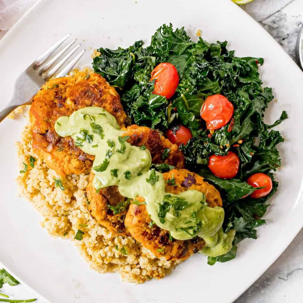 Chickpea sweet potato patties are vegan, gluten free, and so good! This sweet potato patty recipe is a delicious weeknight dinner! Read on to see how to make yam patties that you’ll love.