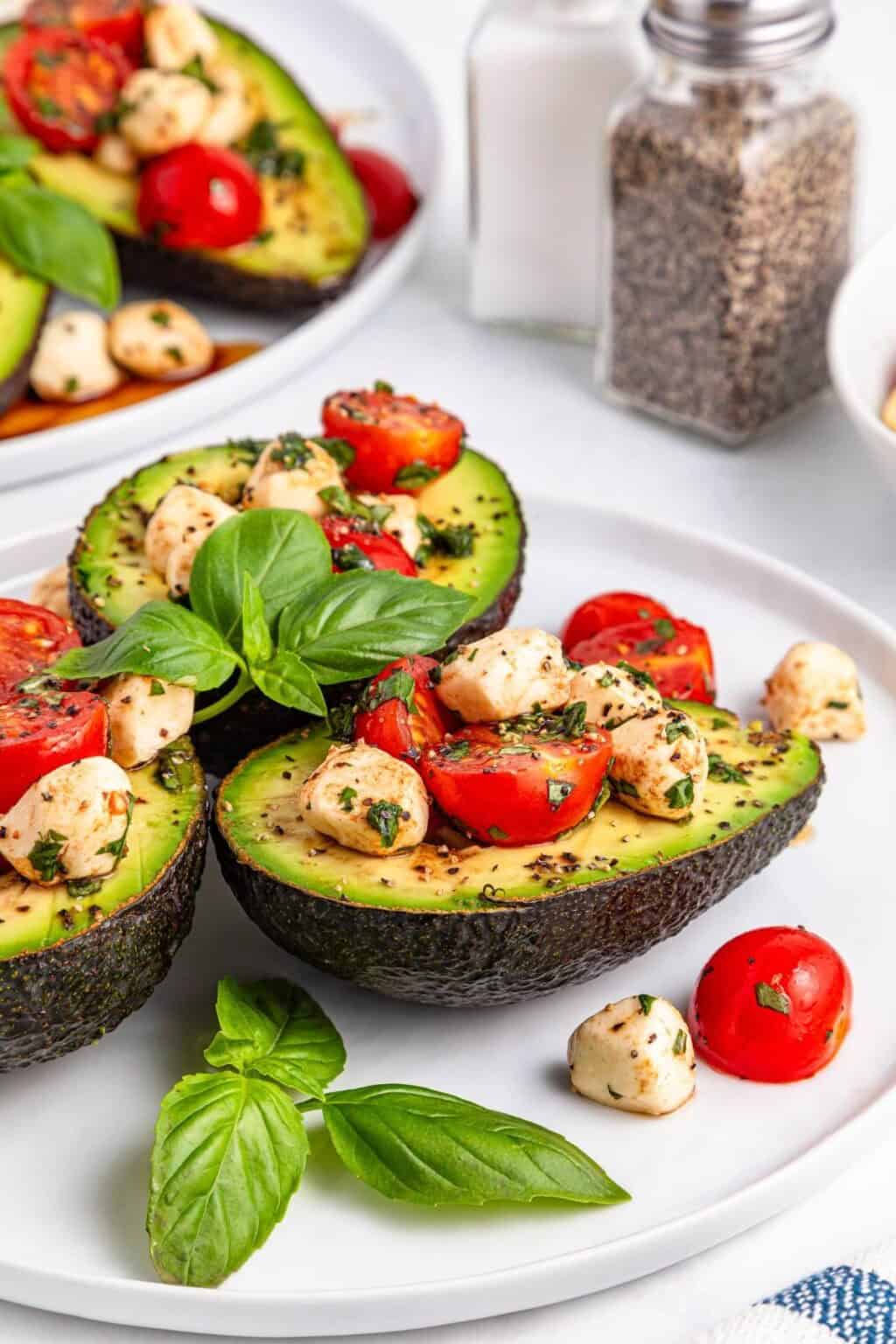 Caprese stuffed avocado is a fresh, no-cook recipe with creamy avocado, tomatoes and mozzarella. Ready in 10 minutes and packed with flavor.