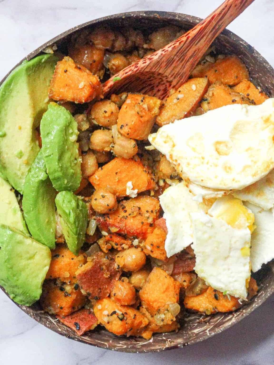 Sweet Potato Chickpea Hash with Egg and Avocado