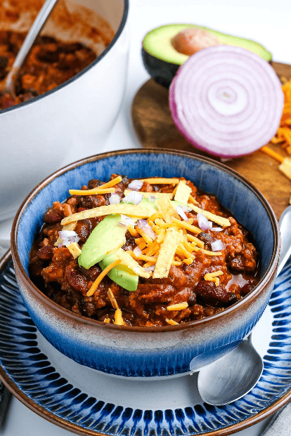 This flavorful ground turkey chili isn’t just delicious; it’s your secret weapon for stress-free dinners. Prep it ahead of time and enjoy the convenience of having piping hot chili.