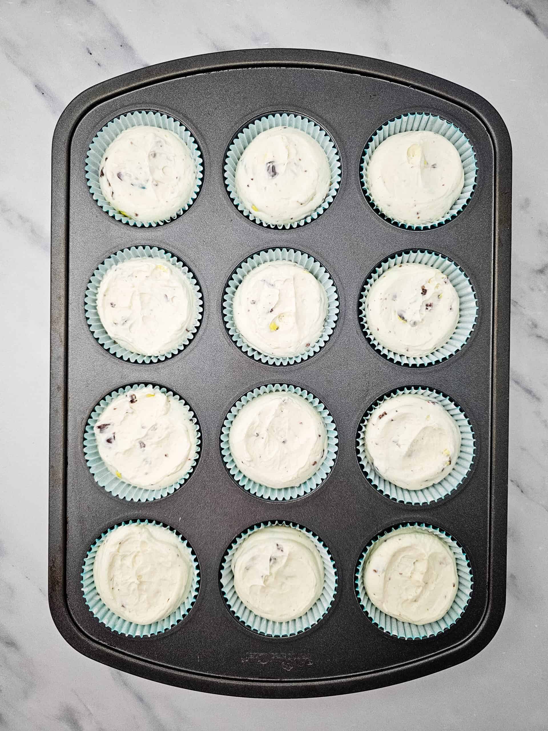 - Line a muffin pan with cupcake liners.