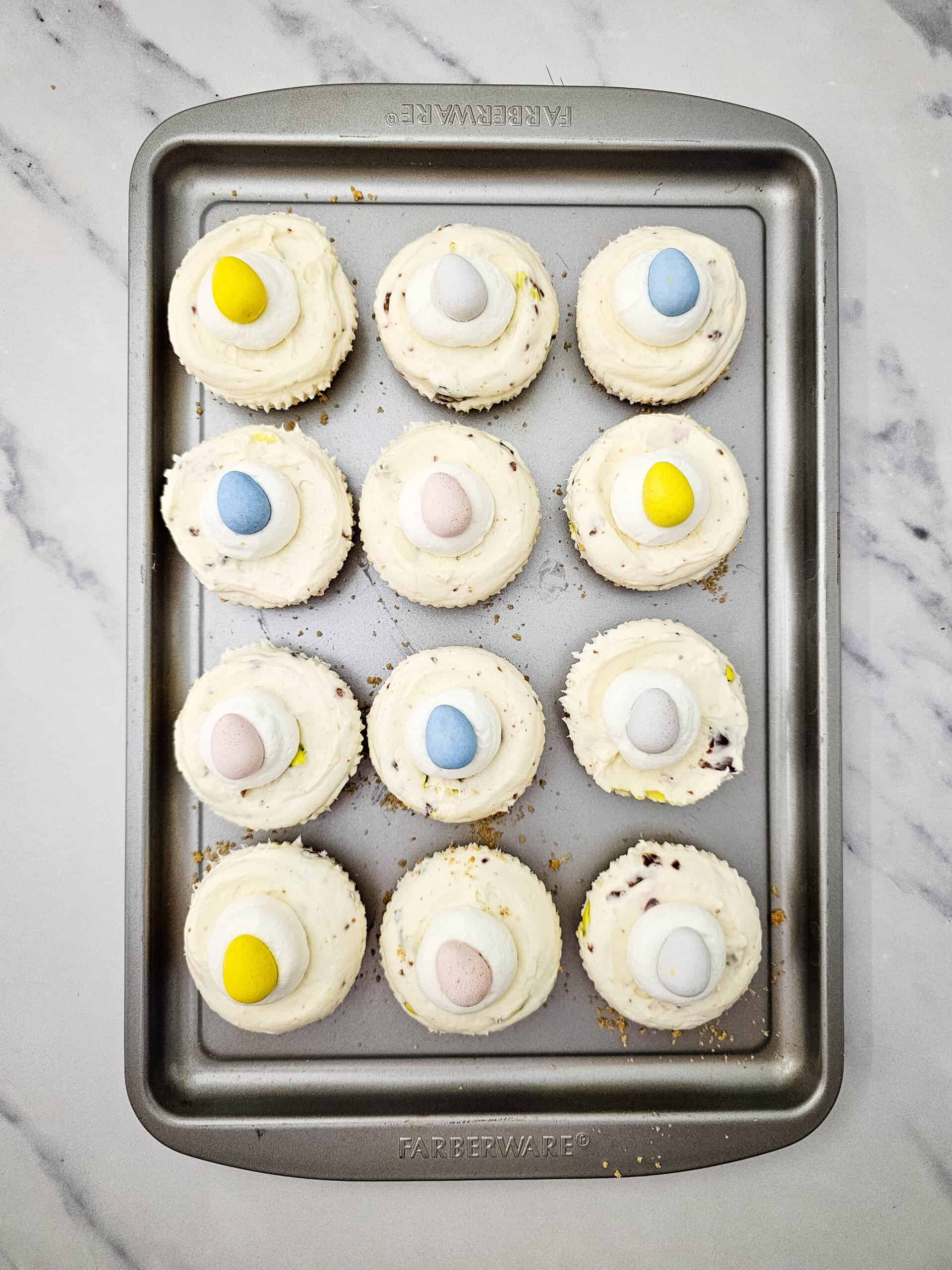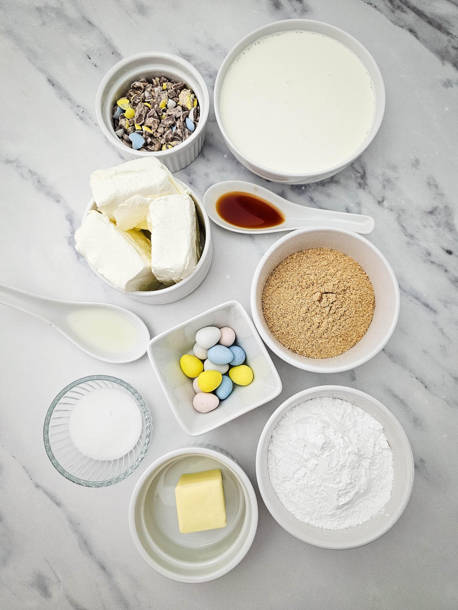 - ⅓ cup crushed Cadbury Mini Eggs