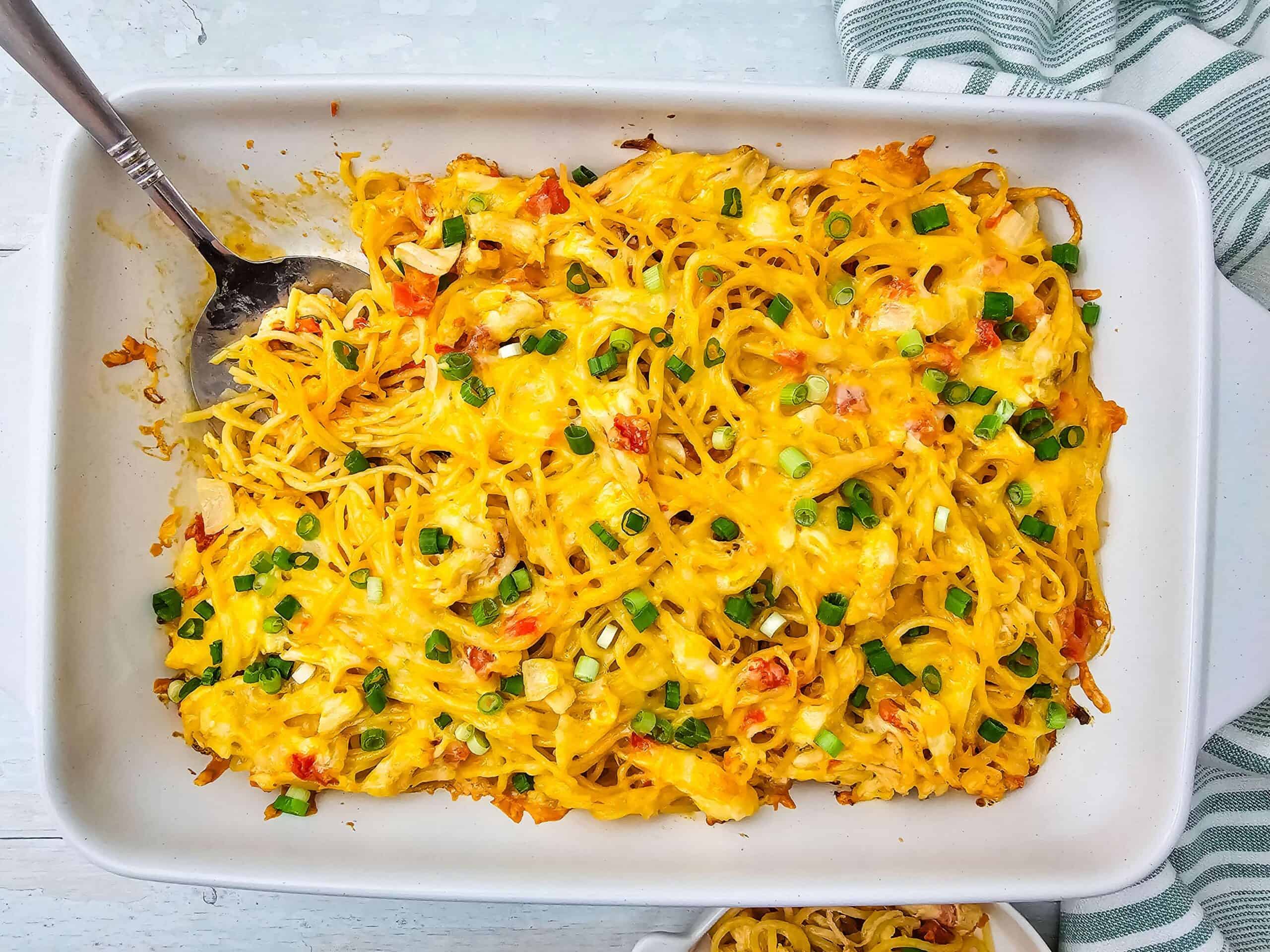 Cheesy Rotel Chicken Spaghetti is a creamy, comforting casserole packed with tender chicken, melty cheese, and bold Rotel flavor.It’s an easy family dinner that’s perfect for busy nights or feeding a crowd.