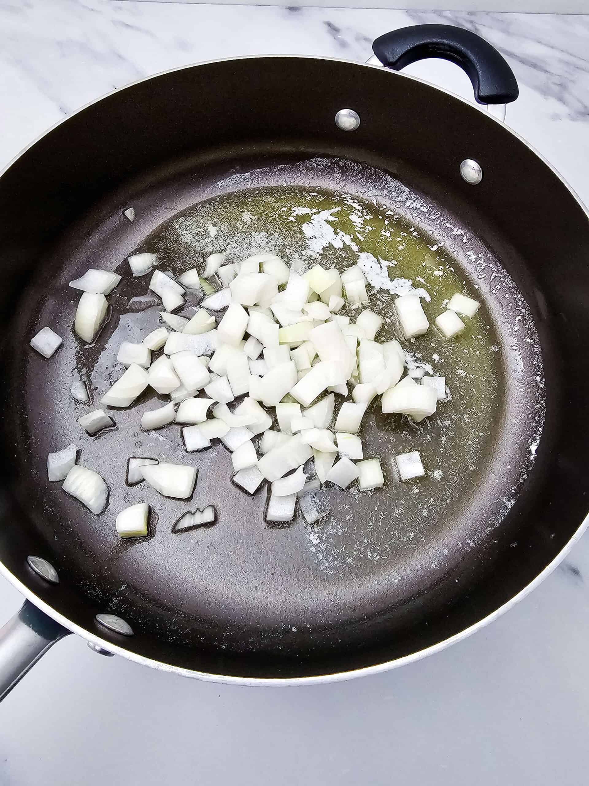 Preheat the oven. Grease 9×13 baking dish. Chop the onions