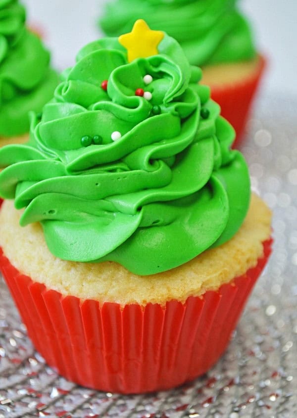 These Simple Vanilla Christmas Tree Cupcakes are so moist and delicious with the fluffiest buttercream frosting. Bake up a batch for family and friends and enjoy!