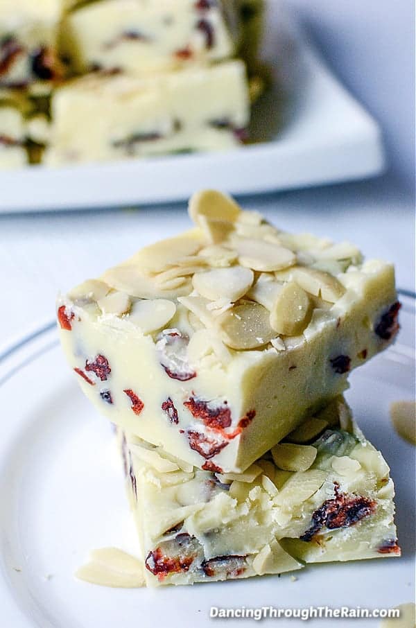 This White Chocolate Cranberry Fudge with Almonds is an easy recipe that is perfect for the holiday season or any time of year! Tart and crunchy with a creamy finish!