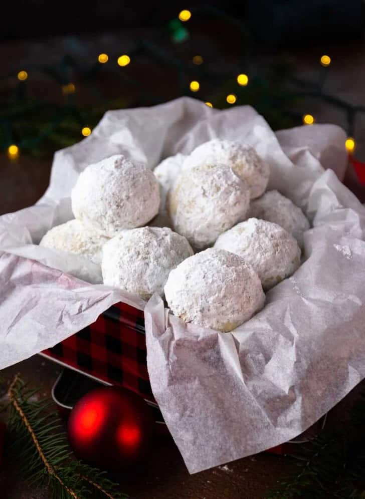 Sweet, lovely Snowball Cookies are the perfect Christmas cookie! Made with just 6 ingredients, these cookies are buttery, loaded with little bits of pecans, and melt-in-your-mouth delicious.