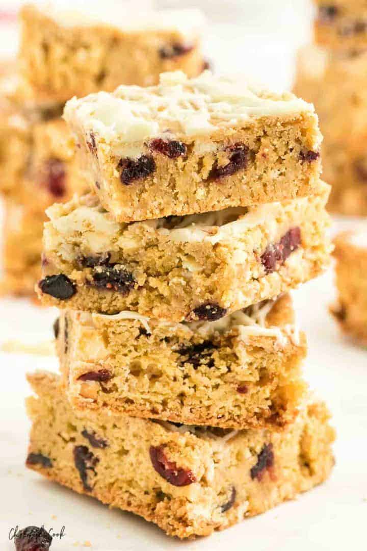Sweet, buttery, soft, and chewy. These Cranberry and White Chocolate Blondies make a great dessert or anytime sweet treat.