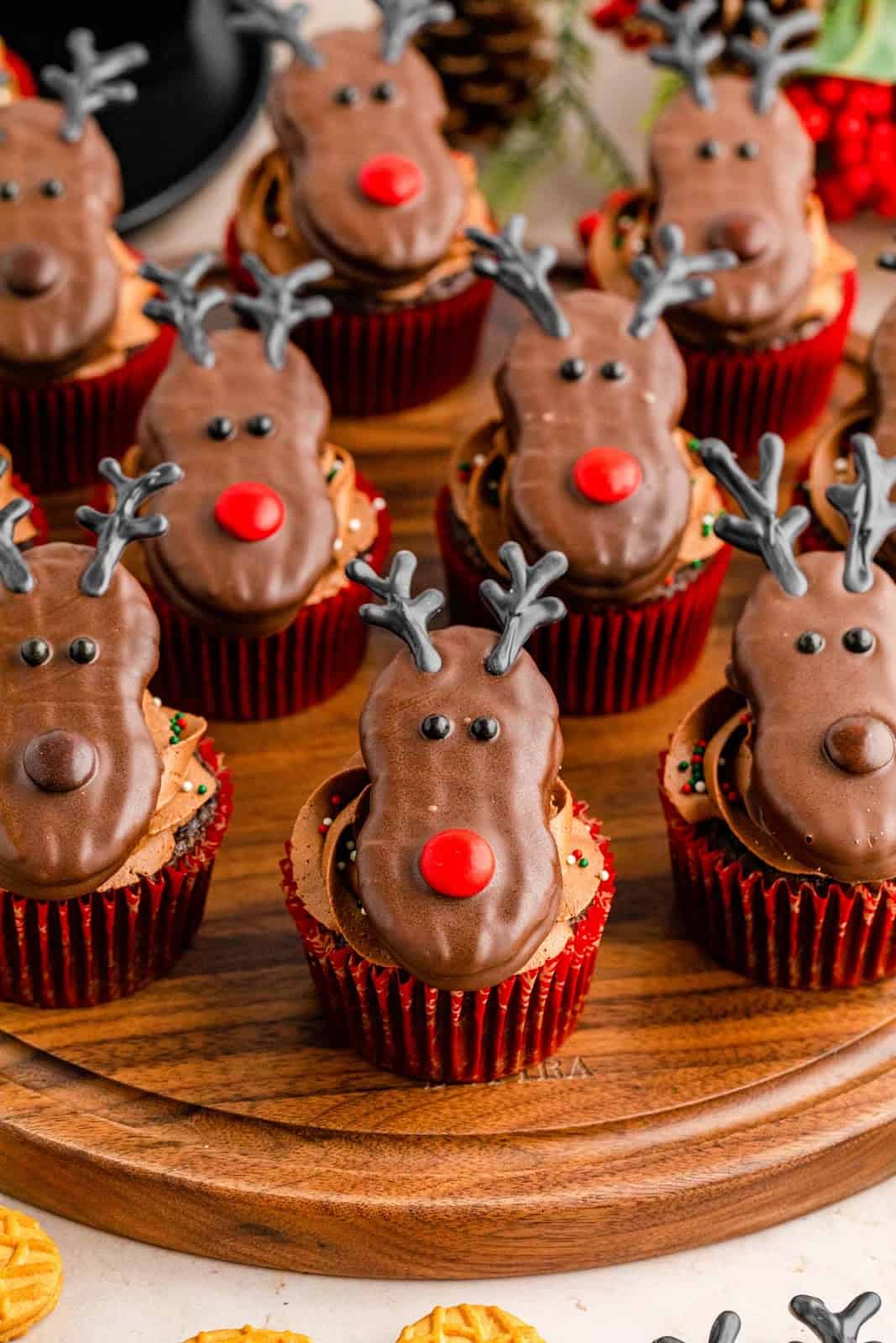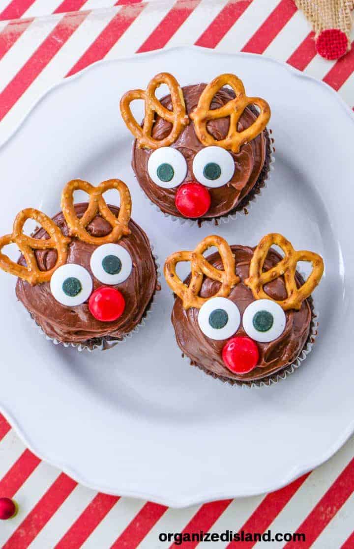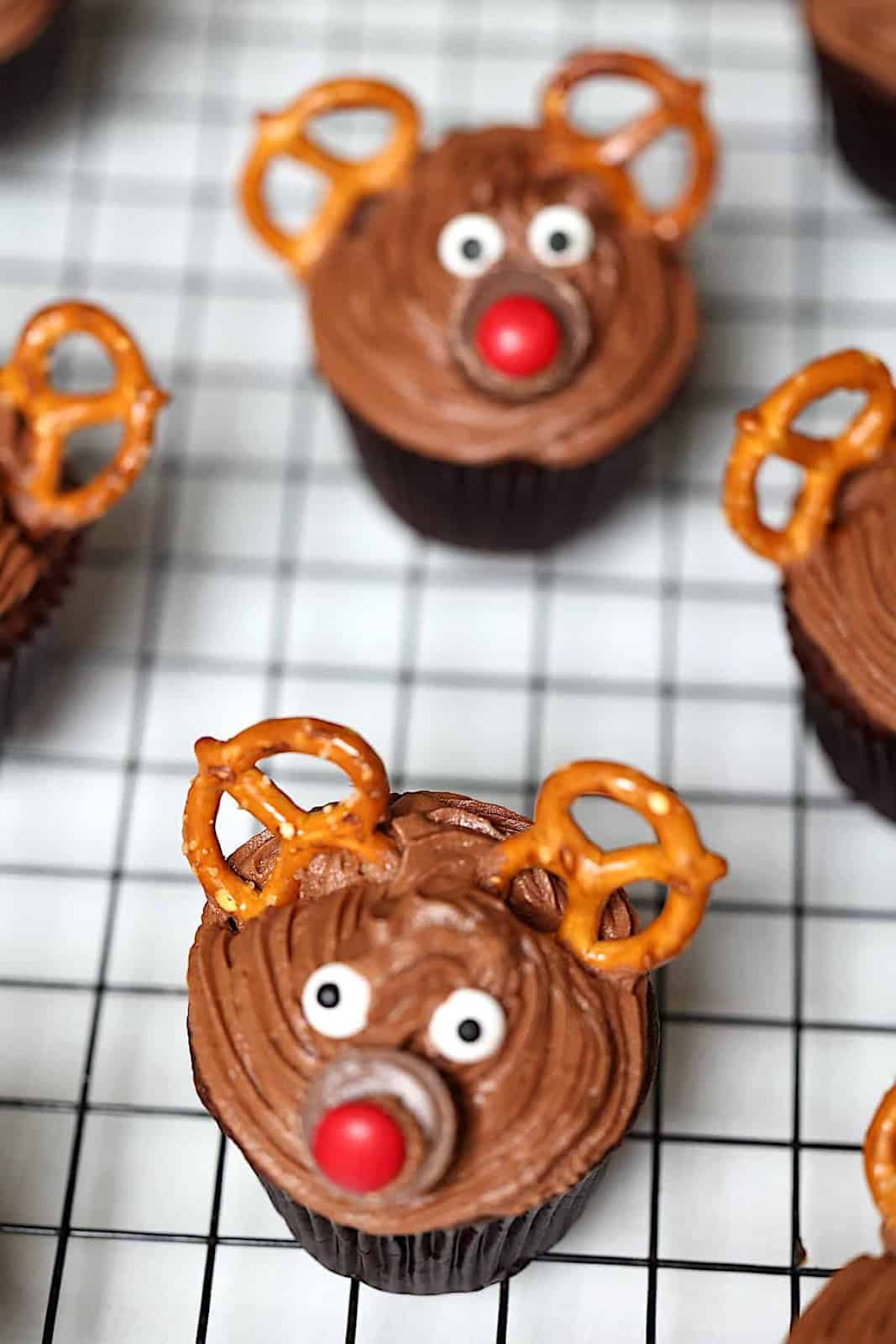 These Christmas Reindeer Cupcakes make for a fun and festive dessert during the holiday season.