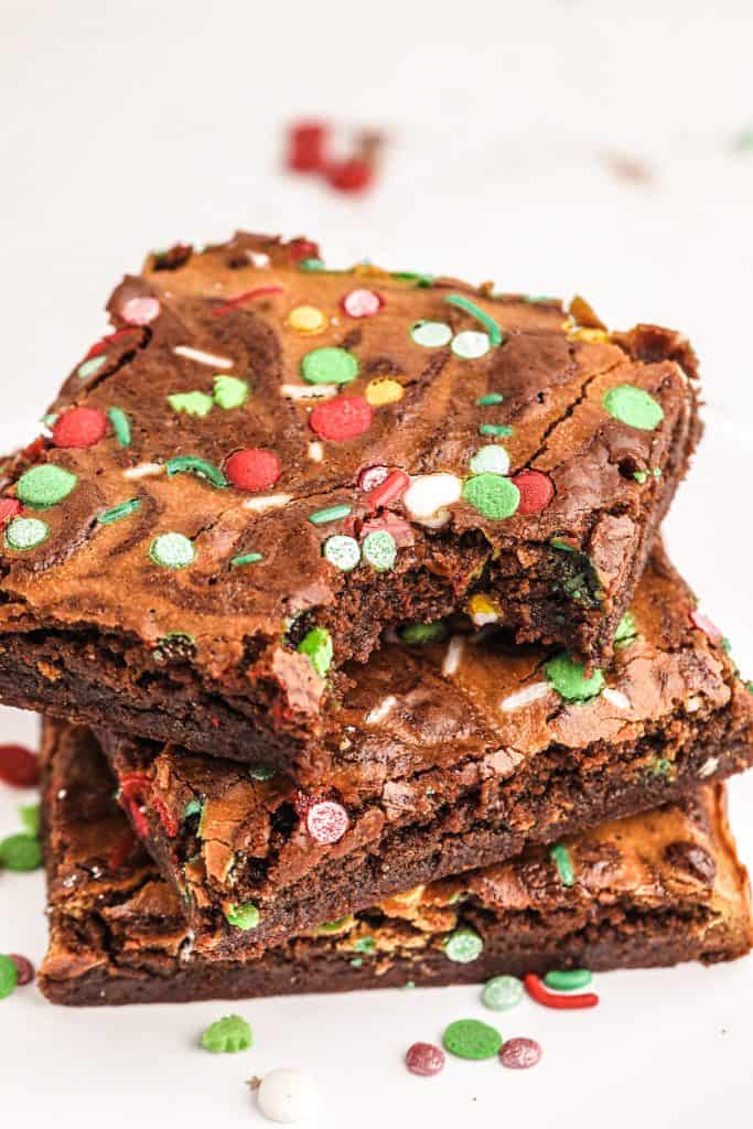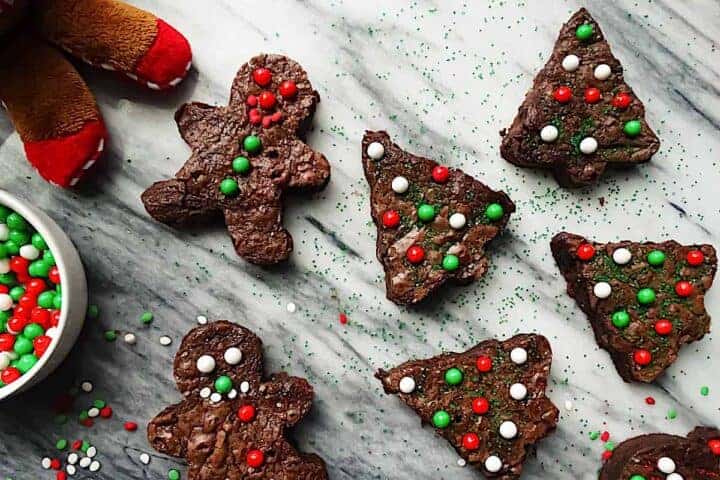 Christmas tree brownies are chewy one-bowl brownies that are decorated to look like Christmas trees. These easy treats are sure to please kids and adults alike!