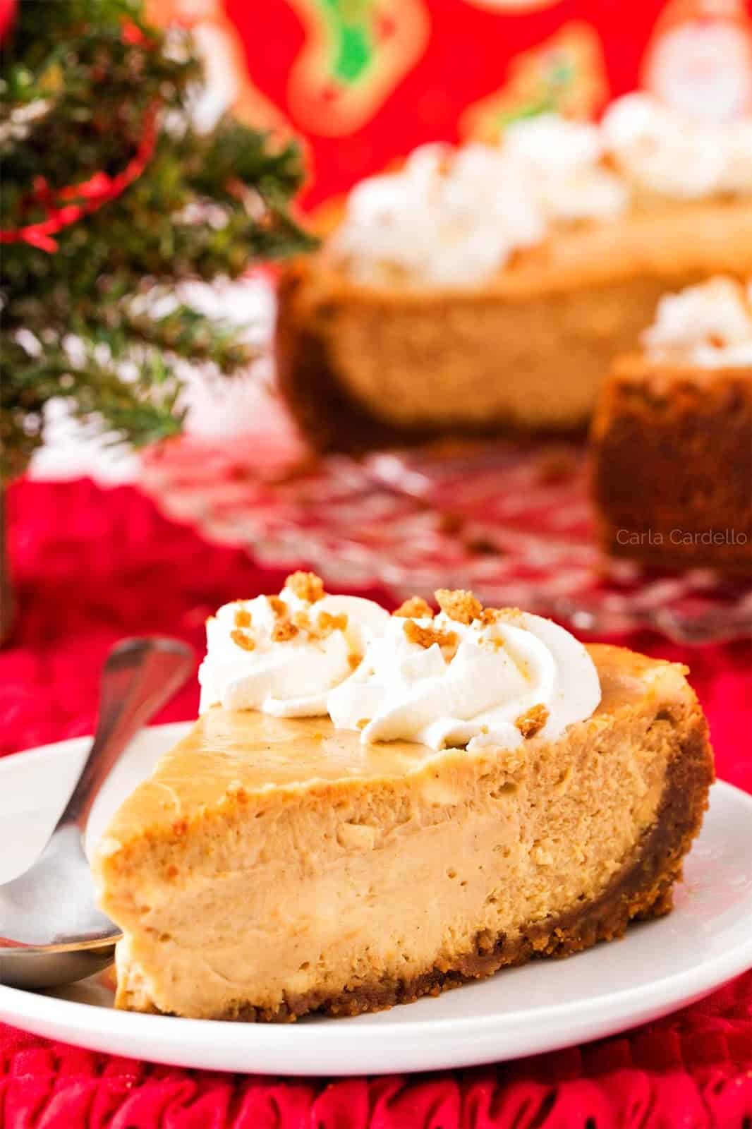 This Christmas cheesecake is packed full of flavor and is the perfect dessert to end your holiday dinner or to bring to office parties.