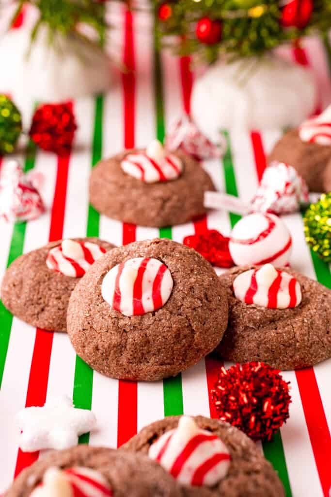 Peppermint Chocolate Thumbprint Cookies are a holiday twist on a classic cookie that are perfect for holiday baking and cookie exchanges!