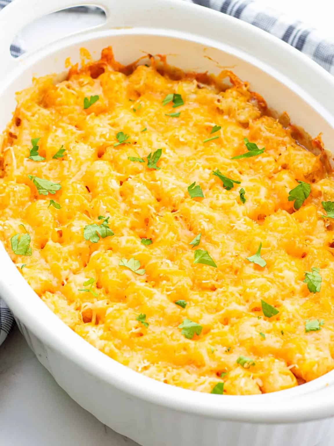 A savory ground beef filling topped with cheesy tater tots, this easy casserole is ready to eat in 30 minutes. It’s classic comfort food perfect for busy weeknights.