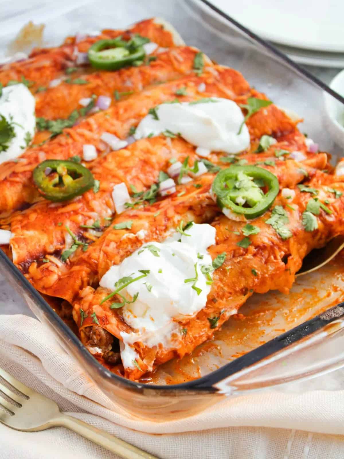 These Cheesy Beef Enchiladas are packed with seasoned ground beef, smothered in rich sauce, and topped with a generous layer of melted cheese.