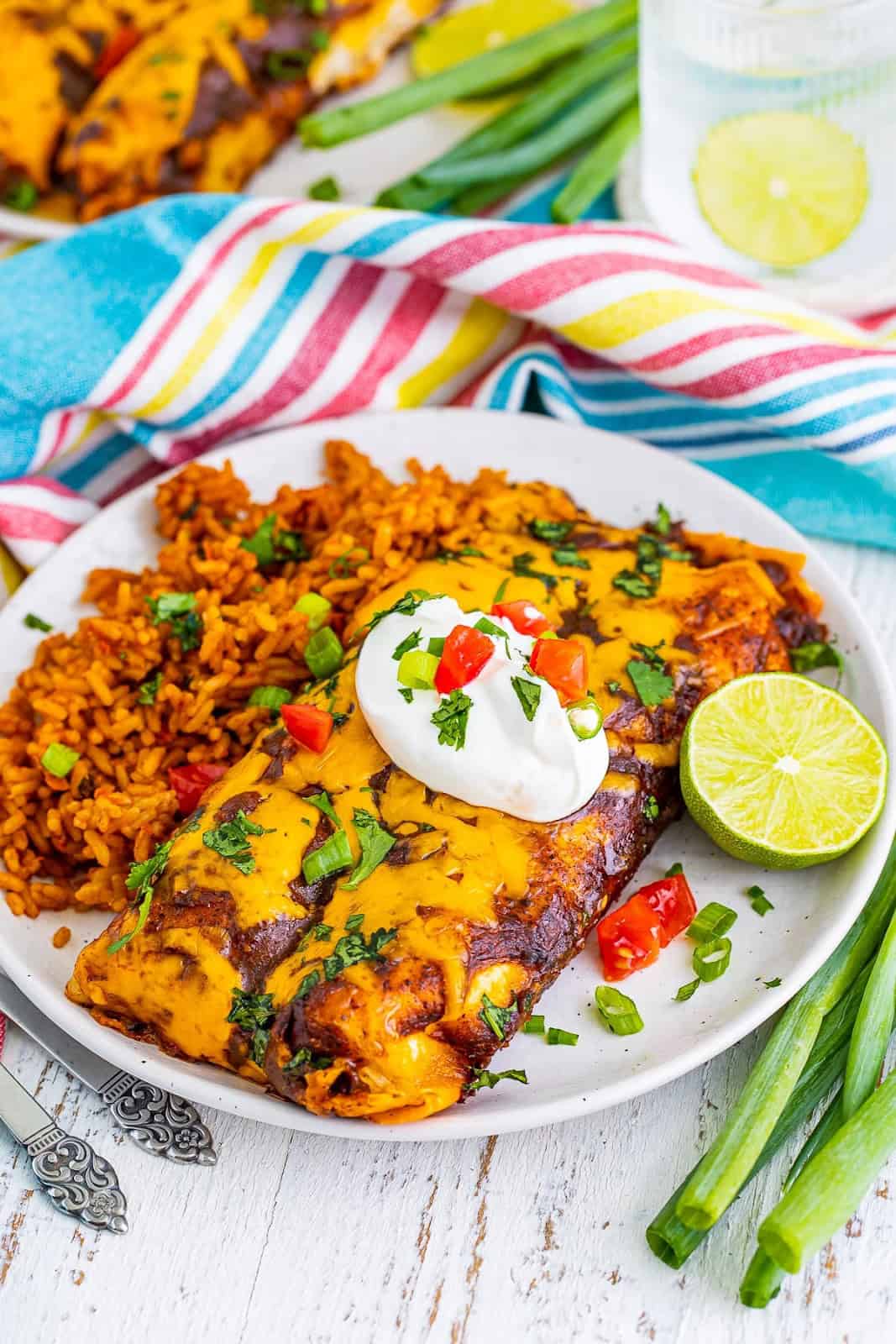 Smothered in homemade red enchilada sauce, this Wet Burrito Recipe is filling, hearty, and the perfect dinner. It is easy to put together and ready in just over an hour, it doesn’t get any better.