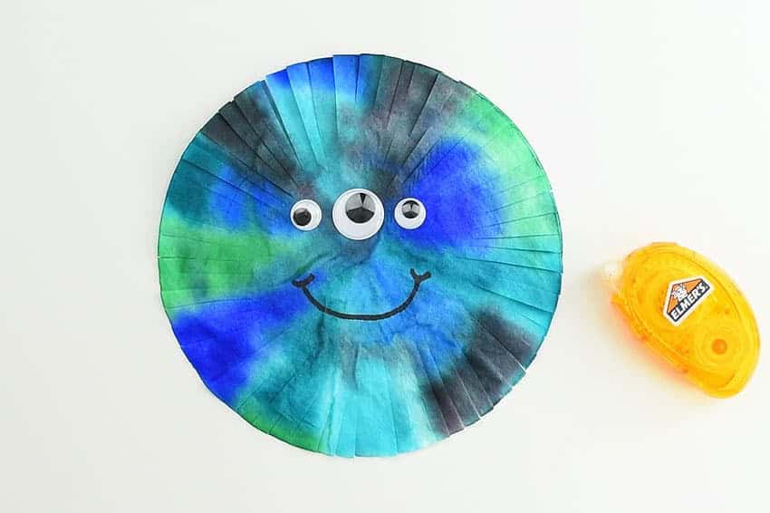 You can make monsters of all sizes depending on the coffee filter you use! Use washable markers to color them anyway you would like. Then use a dropper or spray bottle to wet the filter and watch the monsters come to life. Fold strips of paper for the arms and legs. Use additional paper to make the eyes or glue on googly eyes.