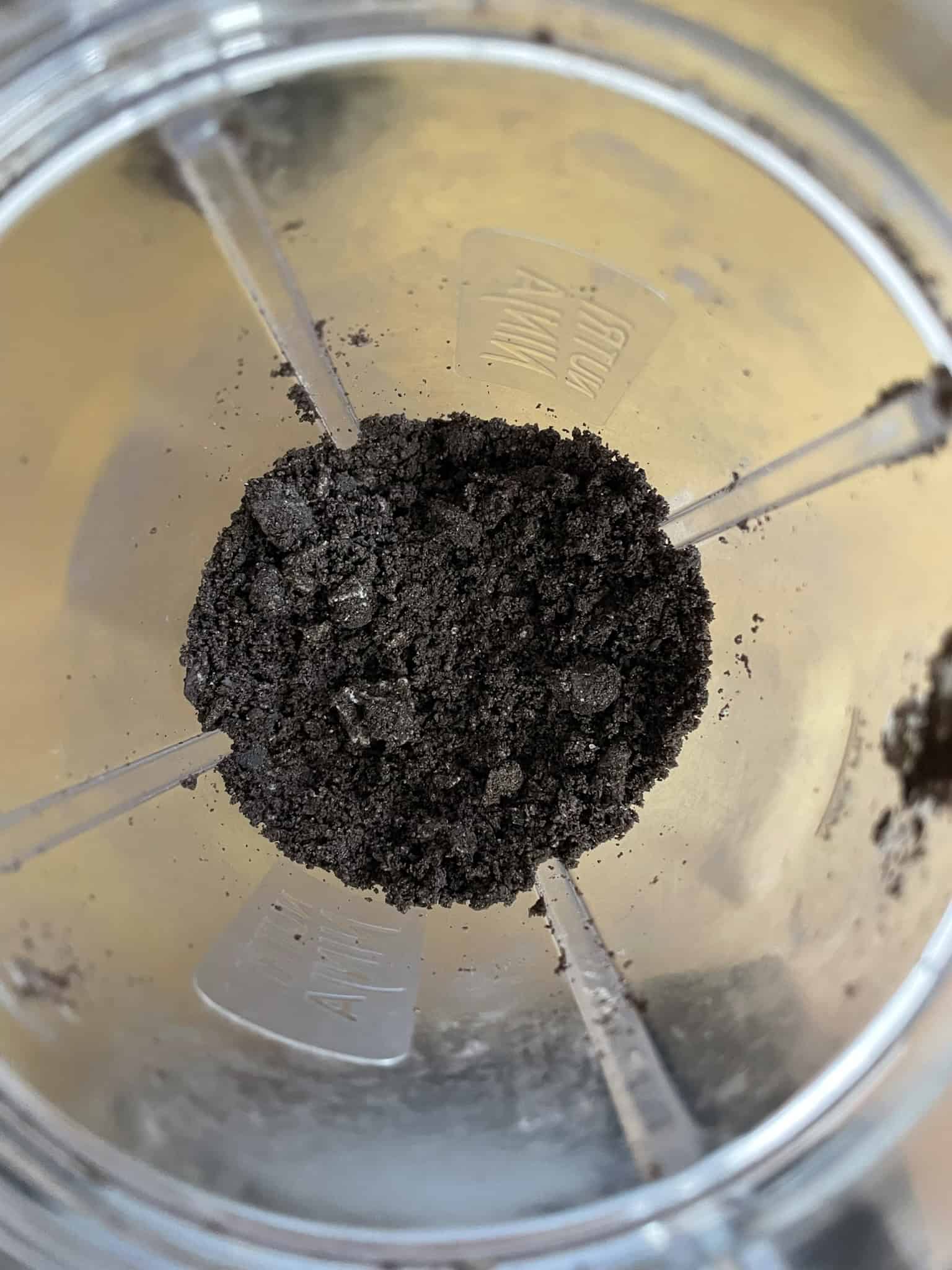 1. Crush the Oreos- add Oreos (filling and all) to a food processor and pulse until fine crumbs form. (Or crush them in a zip-top bag with a rolling pin.)