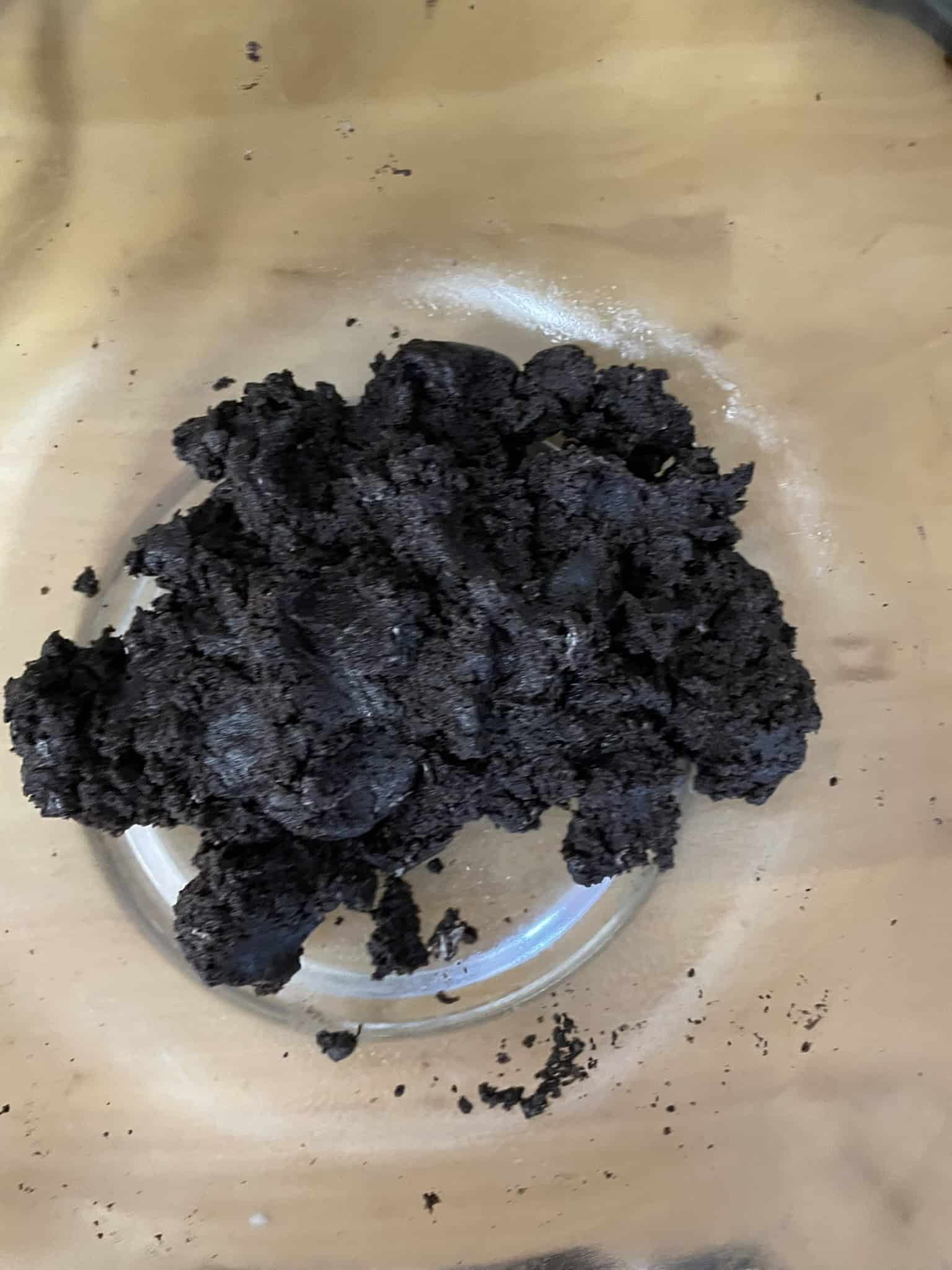 In a large bowl, combine Oreo crumbs, softened cream cheese, espresso powder, and peppermint extract. I did try using a handheld mixer but really what works best is your hands. Once it starts coming together, it isn’t very sticky either!