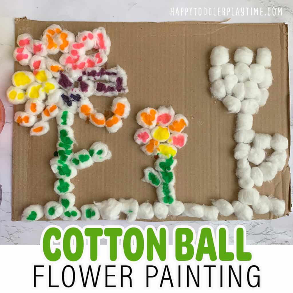 Fair warning, this rainy day craft is a little messy but toddlers enjoy it so much. Create several flowers out of cotton balls on a large piece of cardboard. The kids will add the colors by using an eye dropper filled with water dyed with food coloring.