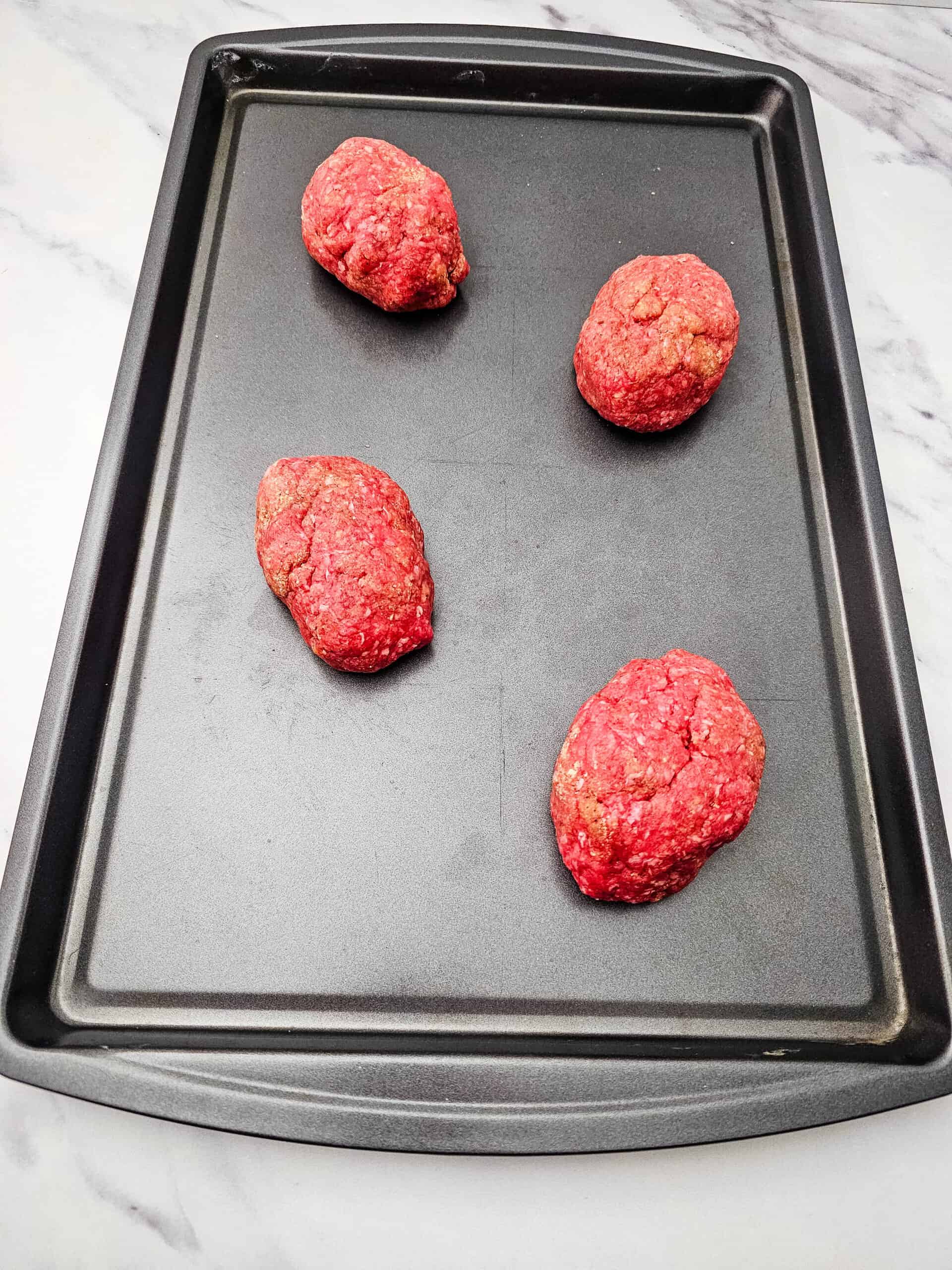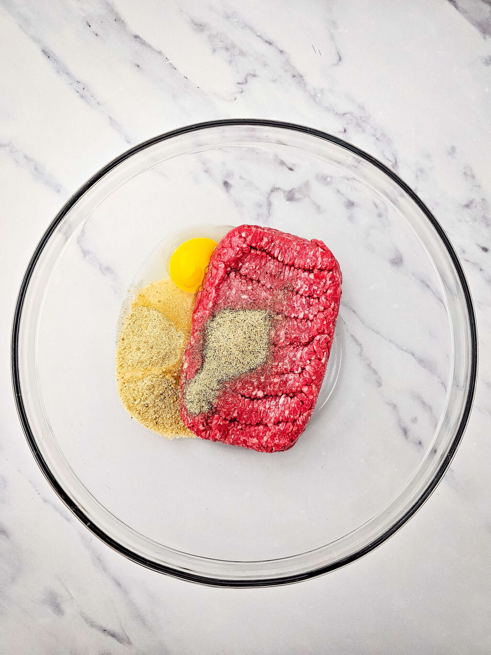 - Combine the ground beef, bread crumbs, egg and half the seasonings in a bowl, then shape into 4 mini meatloaves. Arrange on a large baking sheet.